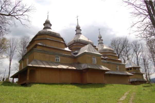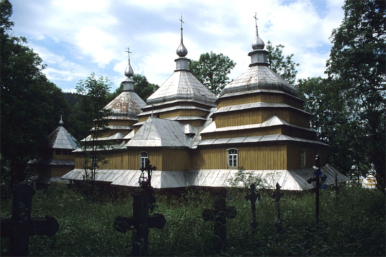 Дерев'яна тризрубна триверха церква, пам'ятка архітектури національного значення, стоїть в центрі сіла Волосянка, на кладовищі, недалеко від нового дерев'яного храму. Стара церква закрита. Відомо, що до Другій світовій війні її покровителями були брати барони Гредлі із Сколе. Навпроти головного входу в храм стоїть широка, приземкувата дзвіниця. Церква і дзвіниця створюють яскравий ансамбль народної архітектури бойківськой школи. Біля церкви знаходиться старе кладовище, яке заросло бур'янами.