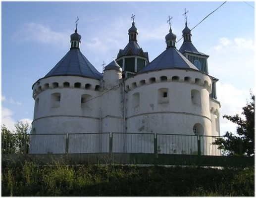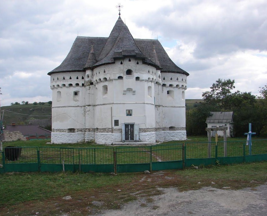 Побудована у 1476 р. Вважається класичним зразком оборонного храму - церква-фортеця, церква-замочок. В плані вона рівномірний хрест. Має чотири напівкруглі башти,три з яких з широким зубчатим карнізом мають зовнішній вигляд замкових башт з амбразурами та стрільницями. Церква двоповерхова, перший- для церкви, другий - горищний для оборони. Протягом 16-17 століть храм неодноразово горів, а тому багато перебудовувався. У кінці 19 століття, після чергової перебудови, храм втратив автентичний дах, двосхилий дах з кам'яними фронтонами було замінено на дерев'яний барабан із шатровим верхом, а дерев'яна дзвіниця перебудована до невпізнанності. Зараз церкві повертають автентичний вигляд. Дзвіницю усунули, дах реставрують.