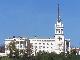 Built in 1954 on the 100th anniversary of the first defense of Sevastopol. Author of the project - architect N. Bogdanov, with the participation of the chief architect of Voenproekta LT-30 Kireeva and chief designer, AP Shumilov. The building is constructed out of Inkerman stone in the forms of domestic classicism. The building closes the prospect of Lenin and the Great Sea, is the main square dominated by Ushakov, compositional influence of which extends to a large area adjacent to the area of the city, played a leading role in shaping the silhouette of the center of Sevastopol by the South Bay. Three-story building, in terms of coming to a rectangle. On the eastern side due to a decrease in relief arranged ground floor. Volume-spatial composition of buildings built on a combination of the three masses - the main volume of the prismatic building chetyrehyarusnoy square in terms of the tower, crowned by a spire, and semi-cylindrical rotunda. The basic principle of architectural design of facades - the principle of contrast and nyuansnyh relations. Different horizontal elements opposed to the vertical - Ionic colonnade flanking the spacious galleries on the facades, as well as wraps ground and first floors, the line of entablature, reinforced parapet and balustrade. On the whole architectural composition of the monumental building has a pronounced asymmetric character. In step with the tower observation decks, topped with a spire, a clock with chimes with melody song "Legendary Sevastopol" - the anthem of the city. Music Vano Ilyich Muradeli the words of Peter Mikhailovich Gradova which 6 October 2000 was awarded the title "Honorary citizen of the city of Sevastopol." The building team is constantly working sailors Playhouse Black Sea Fleet to them. B. Lavrenev, the club is based on the rehearsal song and dance ensemble Russian Black Sea Fleet.