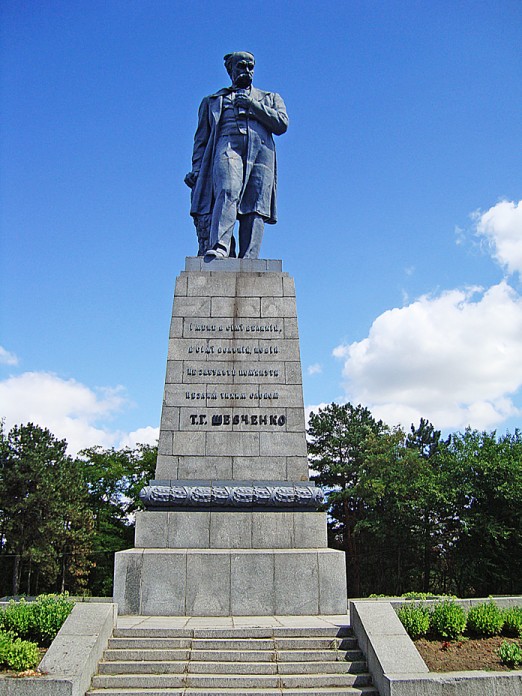 Kobzar monument in the center of the park composition. Taras Shevchenko (1814-1861) - Ukrainian poet and artist, founder of the literary Ukrainian language. Born into the family of a serf. Orphaned early, was a shepherd, farmhand, with 14 years of "Cossack" from the landowner P. Engelhardt. Literacy studied with a deacon of Agriculture. Literary fame with the publication of Shevchenko received in 1840 a collection of poems "Kobzar". Taras reflect the feelings, aspirations and thoughts Ukrainians. These sentiments were reflected in his poems: "Catherine", "Haydamaky", "Dream," "Naymichka."