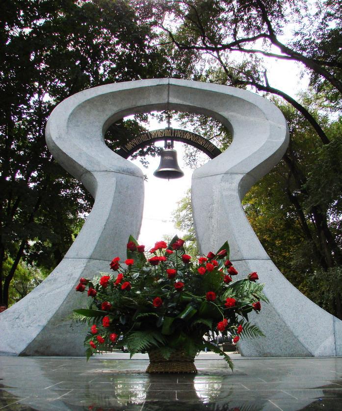 Pmyatnik victims of the Chernobyl disaster. Unveiling of the monument was dedicated to the 15th anniversary of the Chernobyl disaster. The monument is a decorative arch with a bronze bell, weighing 140 kg. Tocsin for architectural construction made the bell master Valentin Savega.