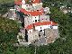 Castle (stone) is situated on a mountain of volcanic origin, height 68 m. On the grounds of the castle is Mukachevo Historical Museum. The total area of 14 thousand square meters of the castle. meters and consists of three parts - Upper, Middle and Lower castles. The oldest - the Upper Castle (XIV-XVI cent.) - Located on the top of the mountain; average (XVII cent.) - On the terrace, at 6 feet below the Lower castle (XVII cent.) - A further 10 meters below. Castle complex in terms of a few elongated beveled rectangle. He is surrounded by dry moats all 10.12 m deep and the stone walls of 3-3.5 meters thick. The castle hosts eight bastions built in the XVII century, located on the bastions before the artillery. In the XIII century castle in the XIV was the property of the Hungarian kings and kings Arpadovichey Anjou - Charles Robert, Louis the Great, Elizabeth of Anjou. But at the end of the fourteenth century Palanok got a new owner - he was a relative of the Hungarian King Zsigmond, Podolski, Prince Fedor Koryatovicha. With Koryatovicha a new era of existence Mukachevo castle. A radical restructuring of existing buildings and new construction of the fortress. Palanok began to carry not only the defense function, but also housing. The corners of the protective wall was erected cylindrical towers (three of them have survived). At the time of Prince Koryatovicha castle occupied only the upper terrace of the Castle Mountains. The mountain itself was surrounded by a moat and a water oak palisade - Palanca. Then the castle got its present name. For a long time was Palanok mayoratnym castle of the Hungarian crown. But the period of the power of the Kingdom of Hungary ended in 1526. Owners Palanca began to change very often. They were family-Rakoczy, the Austrian Leopold II. In the 90 years of the XVIII century it was transformed Palanok in prison. He became one of the most severe political prisons of Austria-Hungary.
