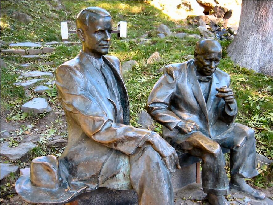 The monument to the Transkarpathian artists-painters Joseph Bokshay and Adalbert Erdeli (bronze), is set in a public garden near Zhupanatskaya Sqr.