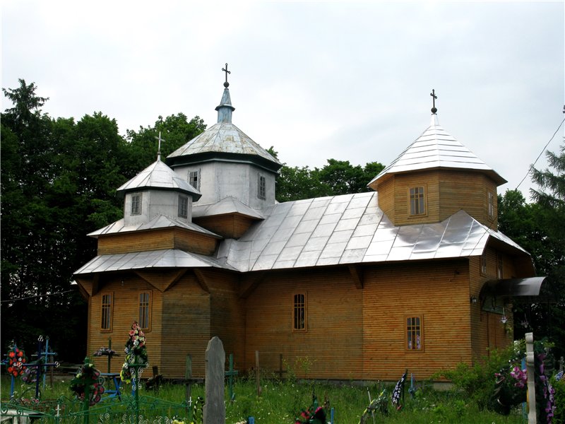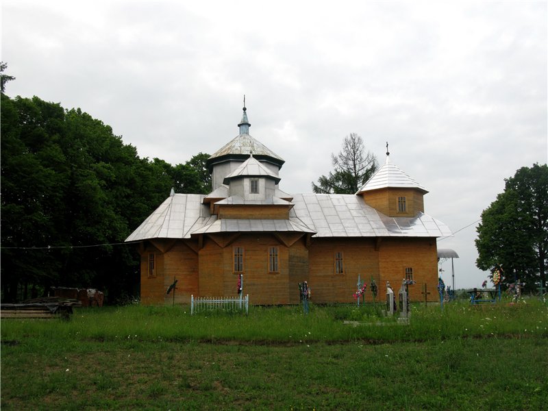 The church made of wood, erected in 1820. Phillips, shamrock-shaped with an octagonal tower over the porch. But only that the "restored": small log varnish, top - as elsewhere in the Bukovyna sewn into tin. The bell tower is still awaiting restoration.